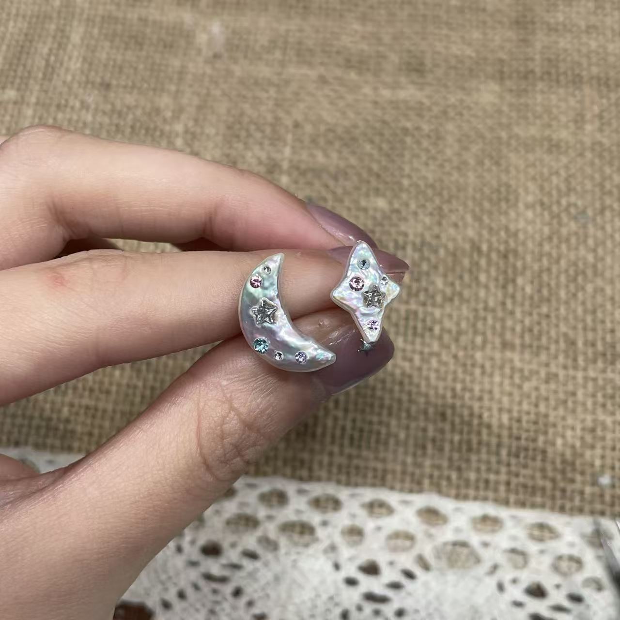 【Pearlish】Starry Summer Night · Moon and North Star Earrings
